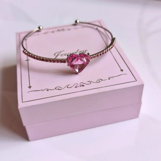 بنگل جواهری صورتی طرح قلب کد ۳۵۹